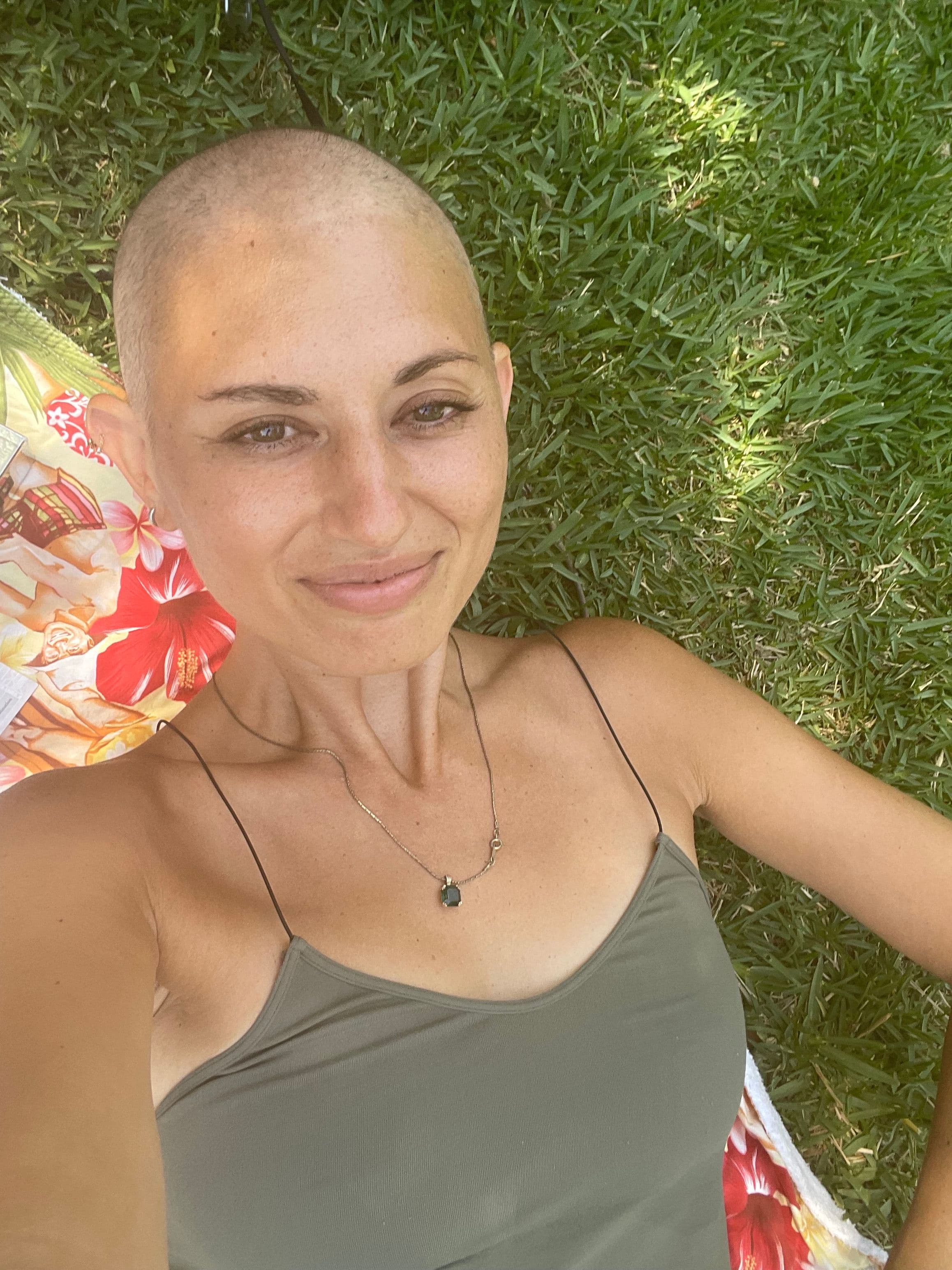 A photo of Sarah taken the day after she shaved her head.